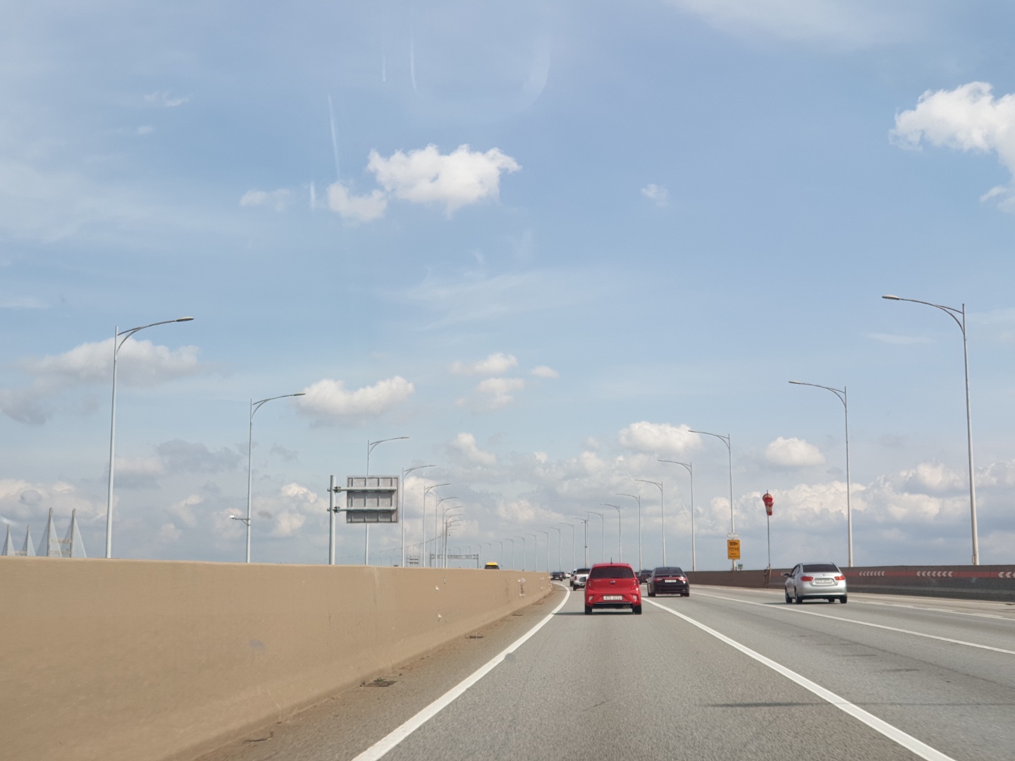 2018년 여름 공항 가는 길. 여행 이후 한국에 돌아와서 맞이한 일련의 사건들에 의해 나는 어떠한 변곡점을 맞이했다. 그런데 서울의 서쪽으로 거주 지역을 옮긴 후 얼마 지나지 않아 승용차를 이용해 서울과 군산을 이동할 일이 잦아졌다. 높게 솟은 서해대교 위를 달리는 일은 내 인생에서 일어나는 꽤 근사한 일에 속하기 때문에 사촌형과 그의 멋진 포르테 쿠페에 감사한다. 서해대교나 인천대교와 같이 바다를 가로지르는 높은 다리를 건너 육지의 이쪽에서 저쪽으로 이동하는 행위는 내게 많은 영감을 준다.