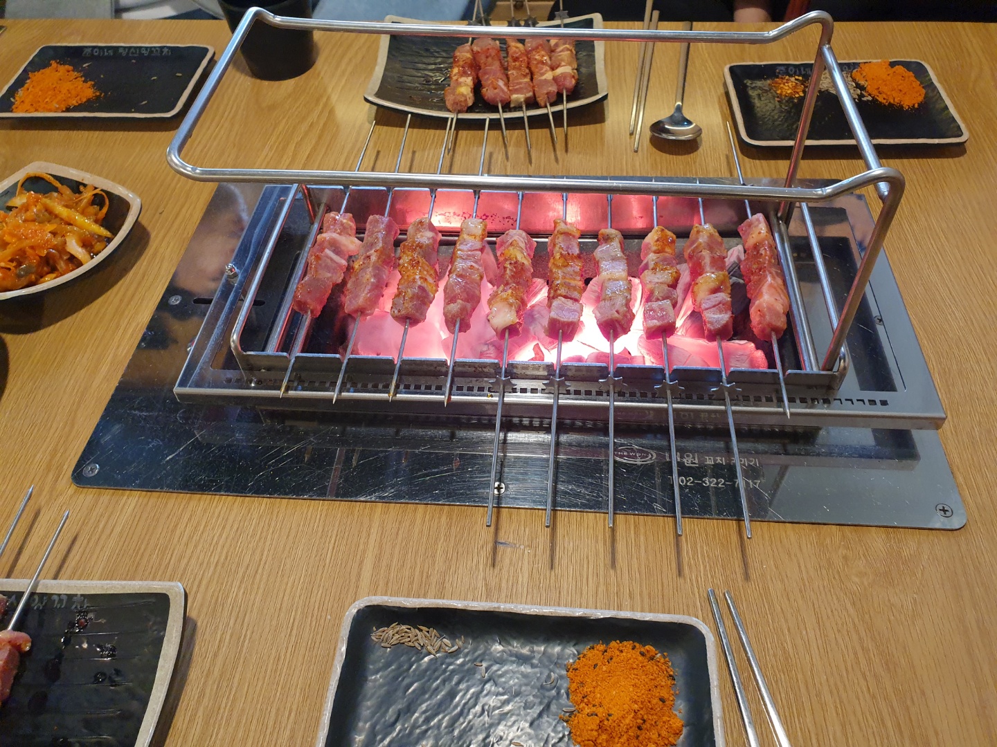 양꼬치를 굽는 숯이 꽤 좋았다. 고기가 금방 익어서 바로 먹을 수 있었다.