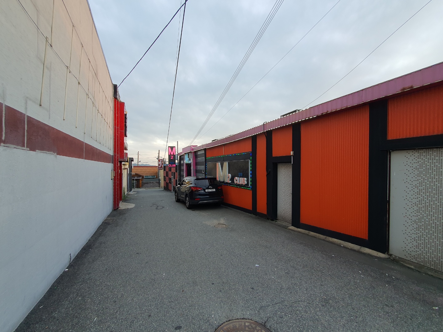아메리칸타운은 군산에 주둔 중인 미군을 상대하기 위해 1969년 한국 정부의 주도 하에 출범한 유흥가입니다. 이곳 산북동에 아메리칸타운이 조성되기 전에는 영화동에 위락 시설들이 있었다고 합니다. 군산 시가지에 있던 기존의 위락 시설들이 사회 문제로 떠오르자 논 한가운데에 있는 산북동에 모아서 만든 일종의 신도시인 아메리칸타운은 클럽과 식당뿐 아니라 환전소, 세탁소, 미용실은 물론 500명 정도의 여성 종사자를 수용할 수 있는 시설을 갖춘 완전한 자립형 마을입니다. 이국적인 고딕 풍의 간판들로 장식된 세탁소, 환전소 등을 지나 타운 안으로 들어가면 언덕을 따라 위락 시설이 줄지어 있습니다. 언덕 바로 아래에는 종사자 거주 시설을 볼 수 있습니다. 지금은 폐허가 된 낡은 슬레이트 지붕들이 현대화된 위락 시설들의 간판들과 대조를 이룹니다. 현재 아메리칸타운에 내국인 종사자는 없고 소련이 붕괴된 이후 유입된 동유럽과 중앙아시아 계열의 종사자들과 필리핀 계열의 종사자들이 대부분이라고 합니다.