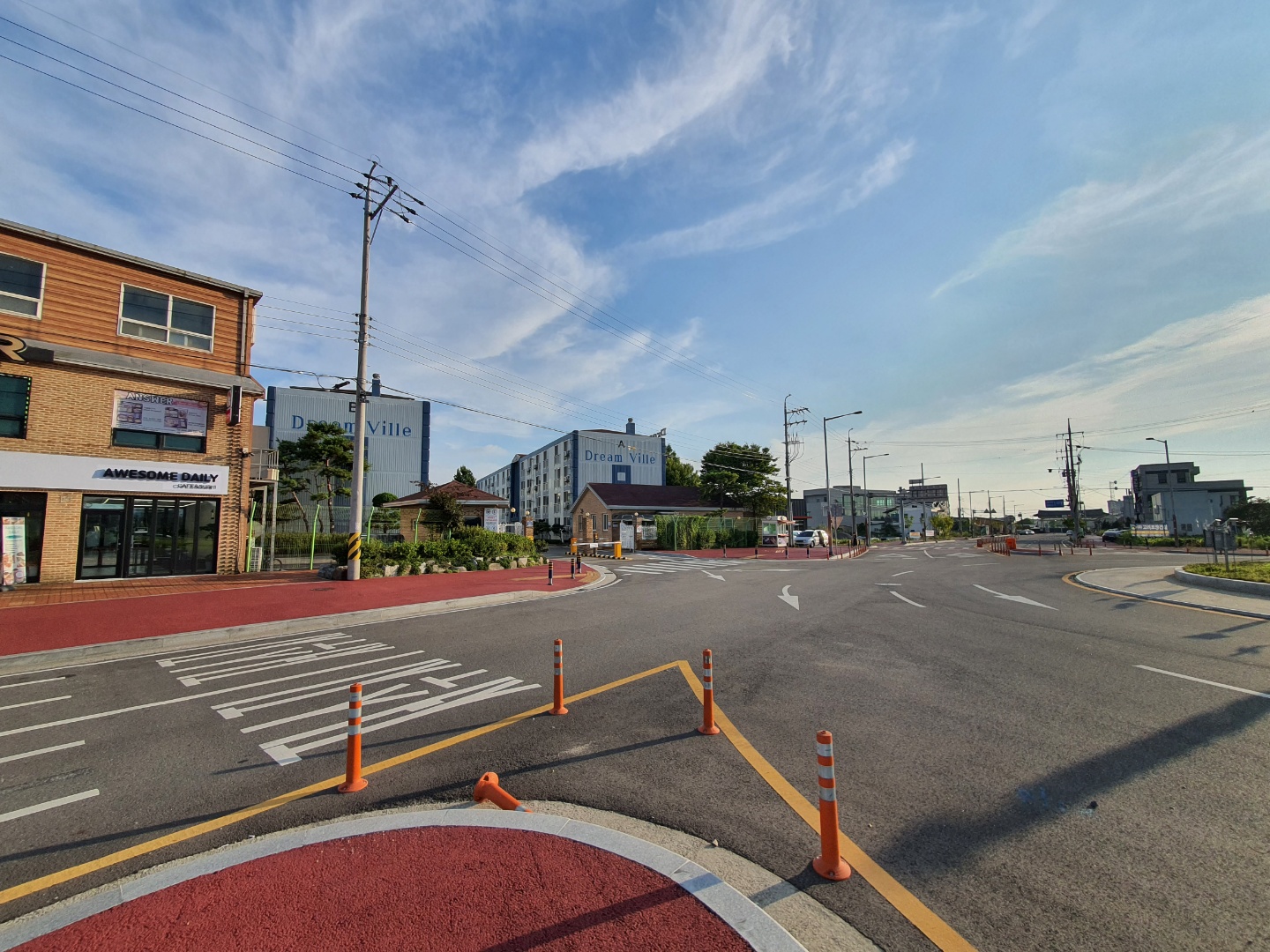 옥구저수지는 규모가 꽤 큰 저수지입니다. 옥구저수지의 제방은 오래전에 생긴 길이라 자전거를 타기에 아주 좋은 길은 아니지만 꽤 근사한 풍경을 볼 수 있는 길입니다. 한쪽으로는 넓은 논이 펼쳐지고 다른 한쪽으로는 큰 물이 펼쳐지는 풍경을 보며 달렸습니다. 얼핏 보면 꼭 평평한 초원처럼 느껴질 정도로 물 위에는 무언가 가득 자라 있었습니다. 2km 정도 제방 위의 도로를 따라 달리니 자동차 전용도로의 인터체인지인 공항교차로가 나왔습니다. 저는 직진을 해서 산북동 방향으로 갔습니다. 아메리카 타운에 들르기 위해서였습니다.