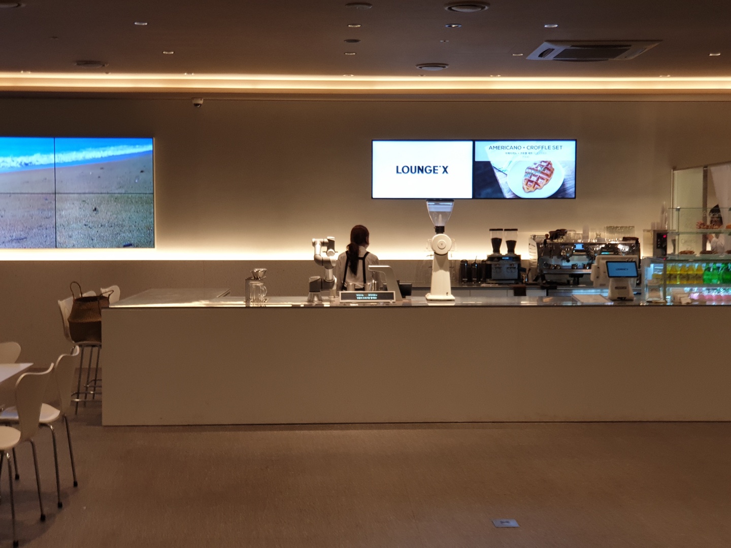카페 바에는 로봇팔이 있다. 메뉴판에 있는 로봇 드립을 주문하면 이 로봇 팔이 커피를 만든다. 로봇 드립을 먹어본 지인의 말로는 꽤 괜찮다고 한다. 바 옆에는 라운지엑스 굿즈를 판매하는데, 쿨링백, 스틸 레고, 텀블러, 에코백, 커피 드립백 등이 있다.