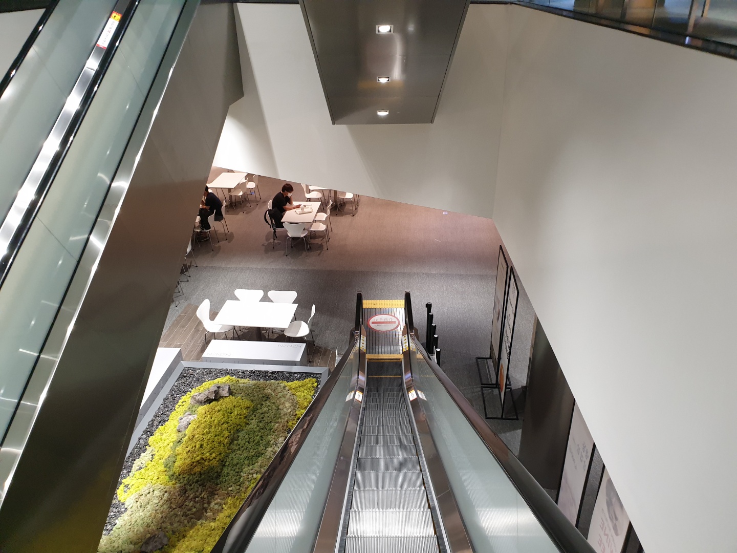 라운지엑스는 벽으로 구획되지 않은 카페이다. 지하 2층으로 에스컬레이터를 타고 내려가면 바로 의자와 탁자가 위치해있는데, 그 규모가 꽤 크다.