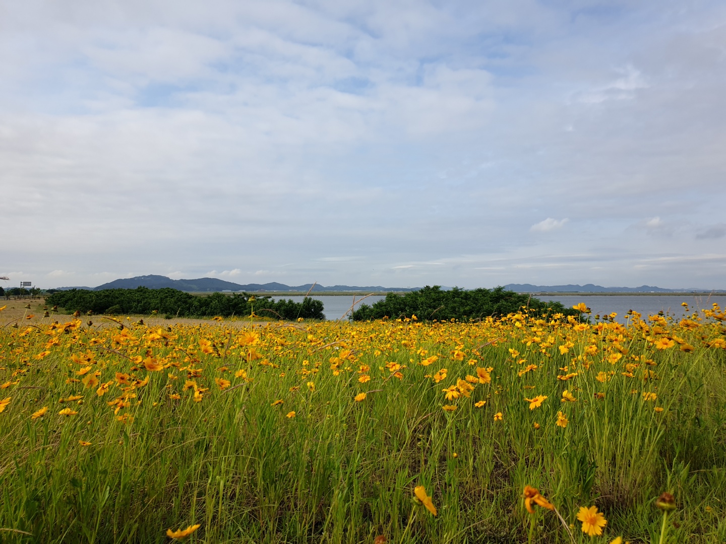 도로변에는 금계국이 만개했다. 어디를 둘러봐도 노란 물결이다. 바람이 불 때마다 물결치는 금계국밭을 보고 있으면 이젤을 세우고 물통을 옆에 두고서 그림을 그리고 싶어진다. 언젠가 볕 좋은 가을날 꼭 그림을 그릴 것이다. 바람 소리를 벗삼다가 가끔은 하모니카가 깔린 포크송을 듣고 싶다. 해가 길다면 배철수의 음악캠프를 들어도 좋겠다.