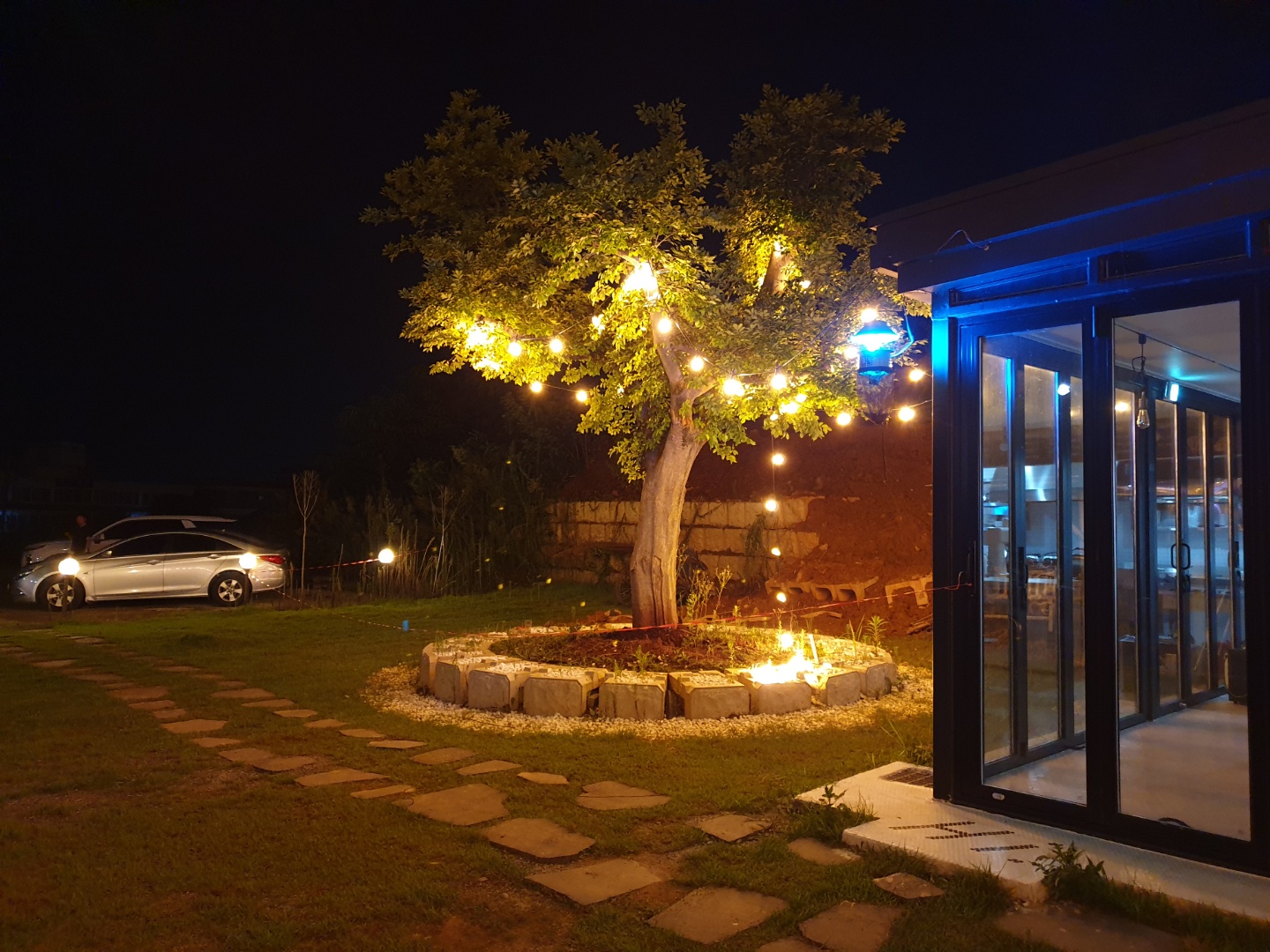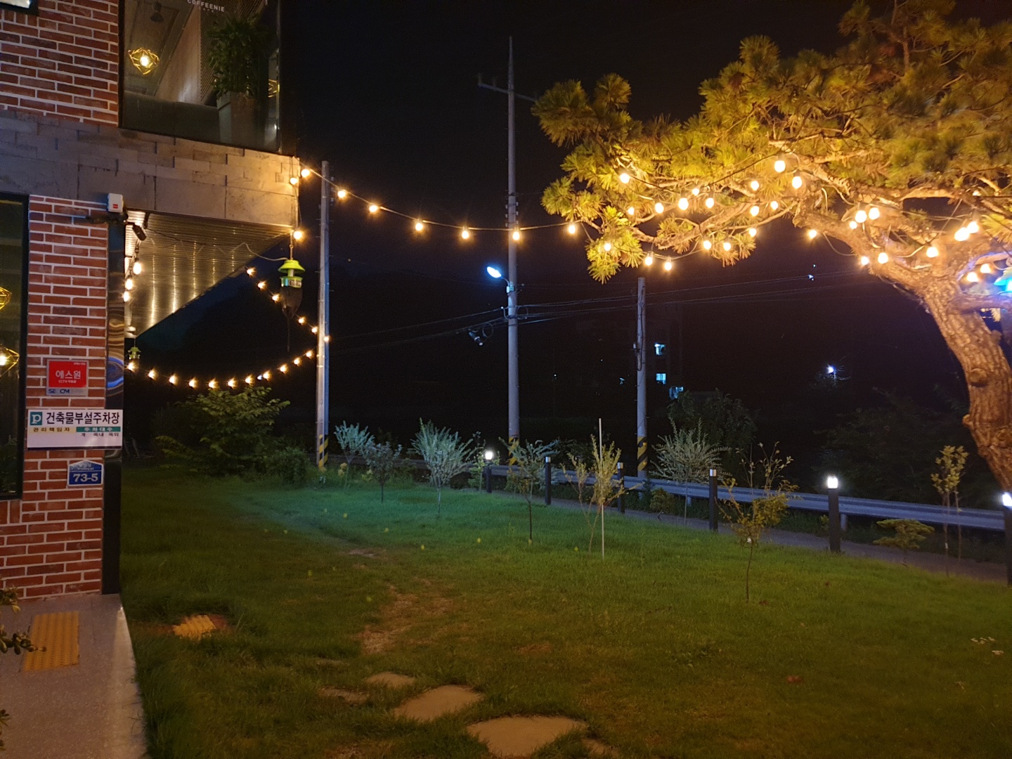 제법 외진 곳에 있어서 너무 적막하지 않을까 걱정했는데 저녁 시간이 지난 후에도 사람들이 많이 방문했다. 마당에는 조명을 켜놓아서 예쁘다.