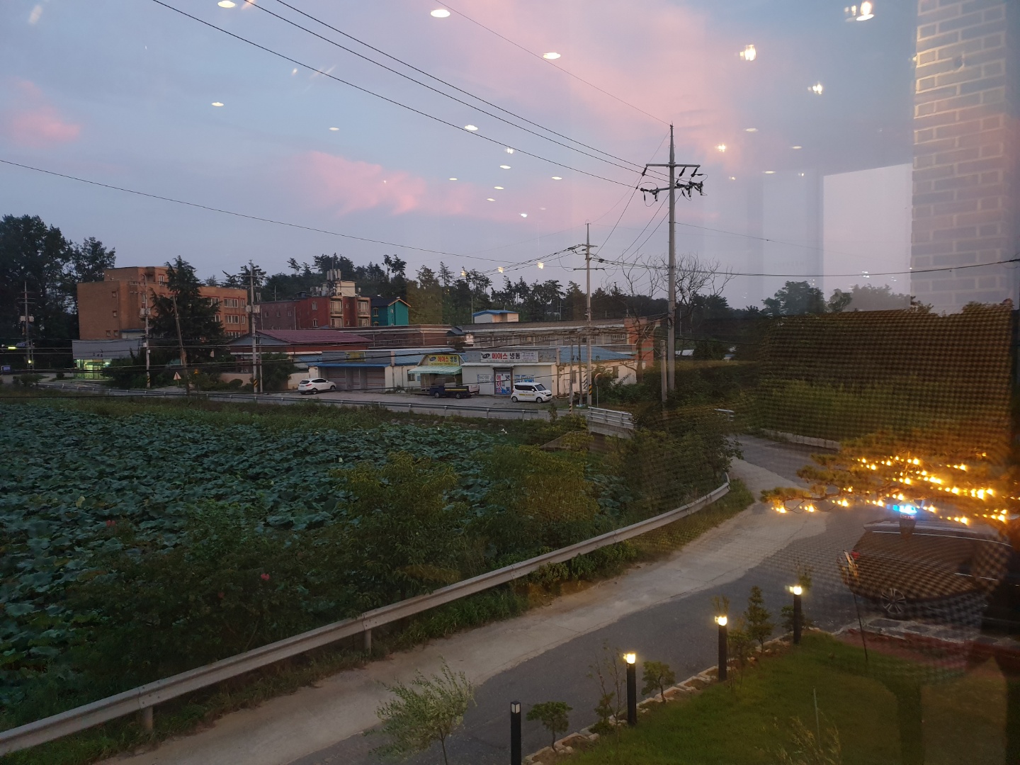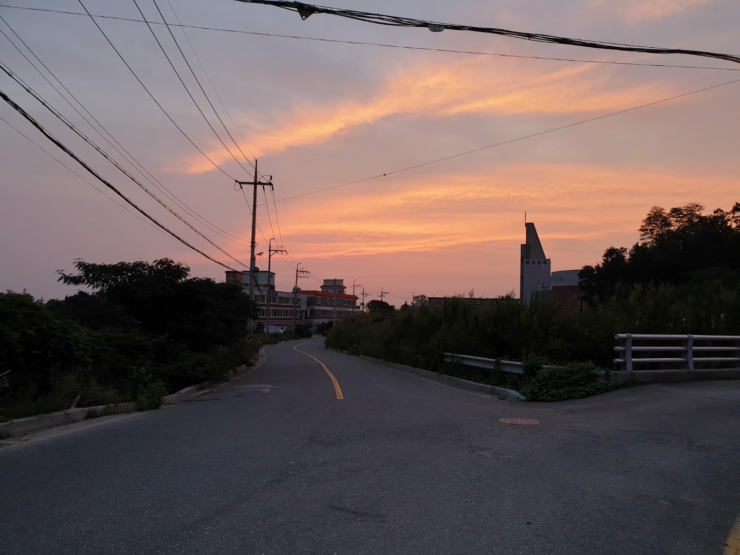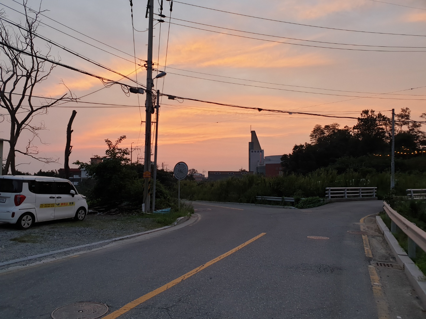 저수지 옆 도로를 걷는 도중 서쪽의 노을을 바라본다. 한여름의 붉은 노을은 많은 생각을 이끈다. 해가 지는 쪽에는 그 바다가 있을 것이고, 바다를 떠올리면 보랏빛 배경 이미 지나간 볕을 받아 노랗게 반짝이는 구름이 부럽다.