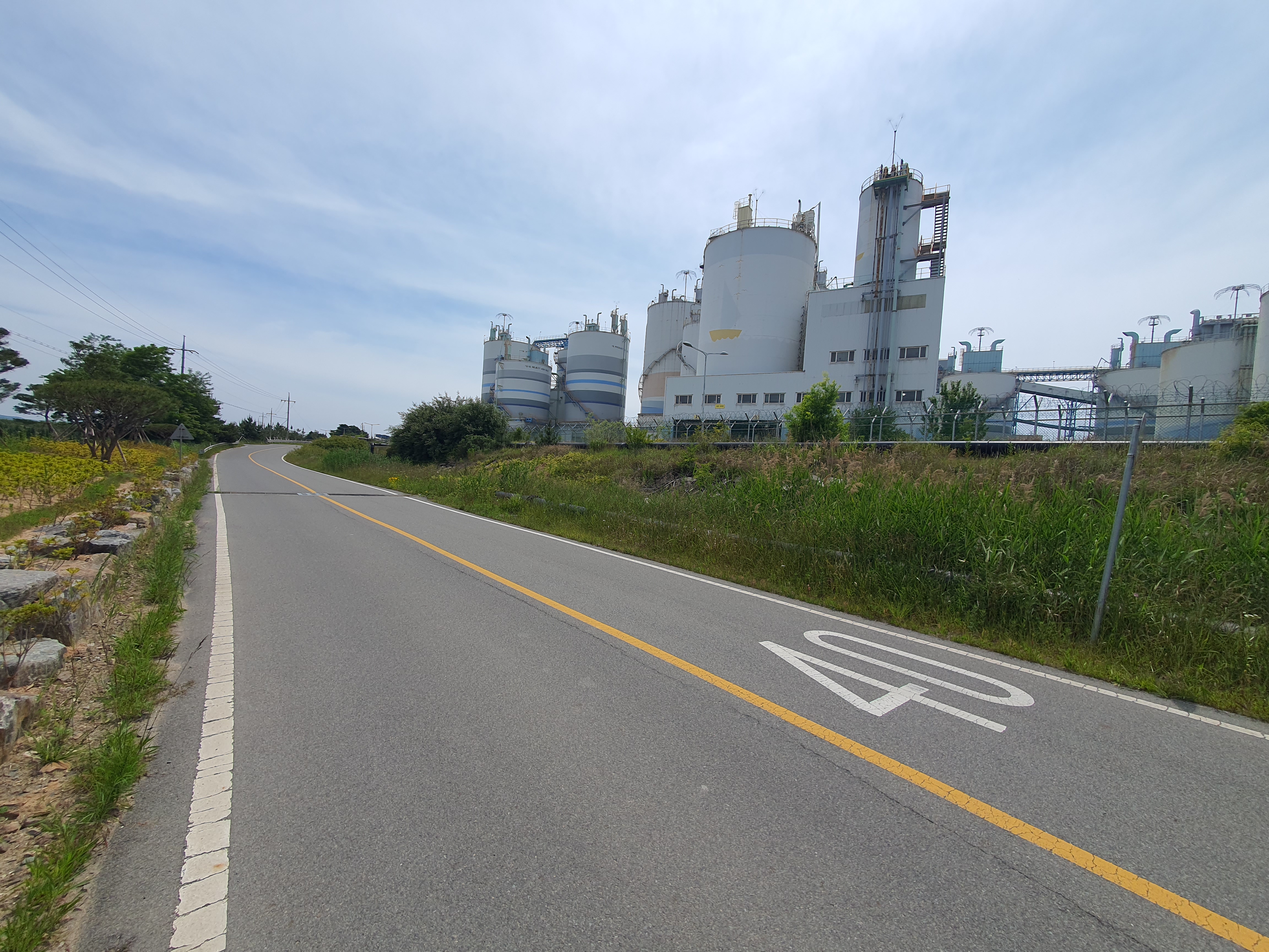 석탄 발전소를 돌아가야 하는데 이 코스가 제일 힘들었습니다. 방조제 시작점부터 쉬는 장소가 없어 몸이 지쳤고 소음과 악취가 있었기 때문입니다.