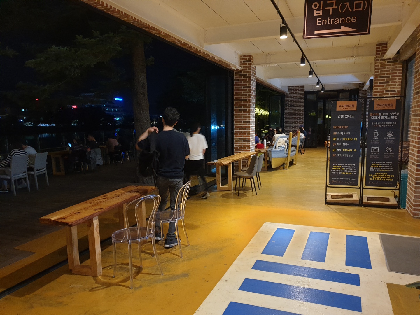 물가에 바로 맞닿은 테라스 자리가 있다.