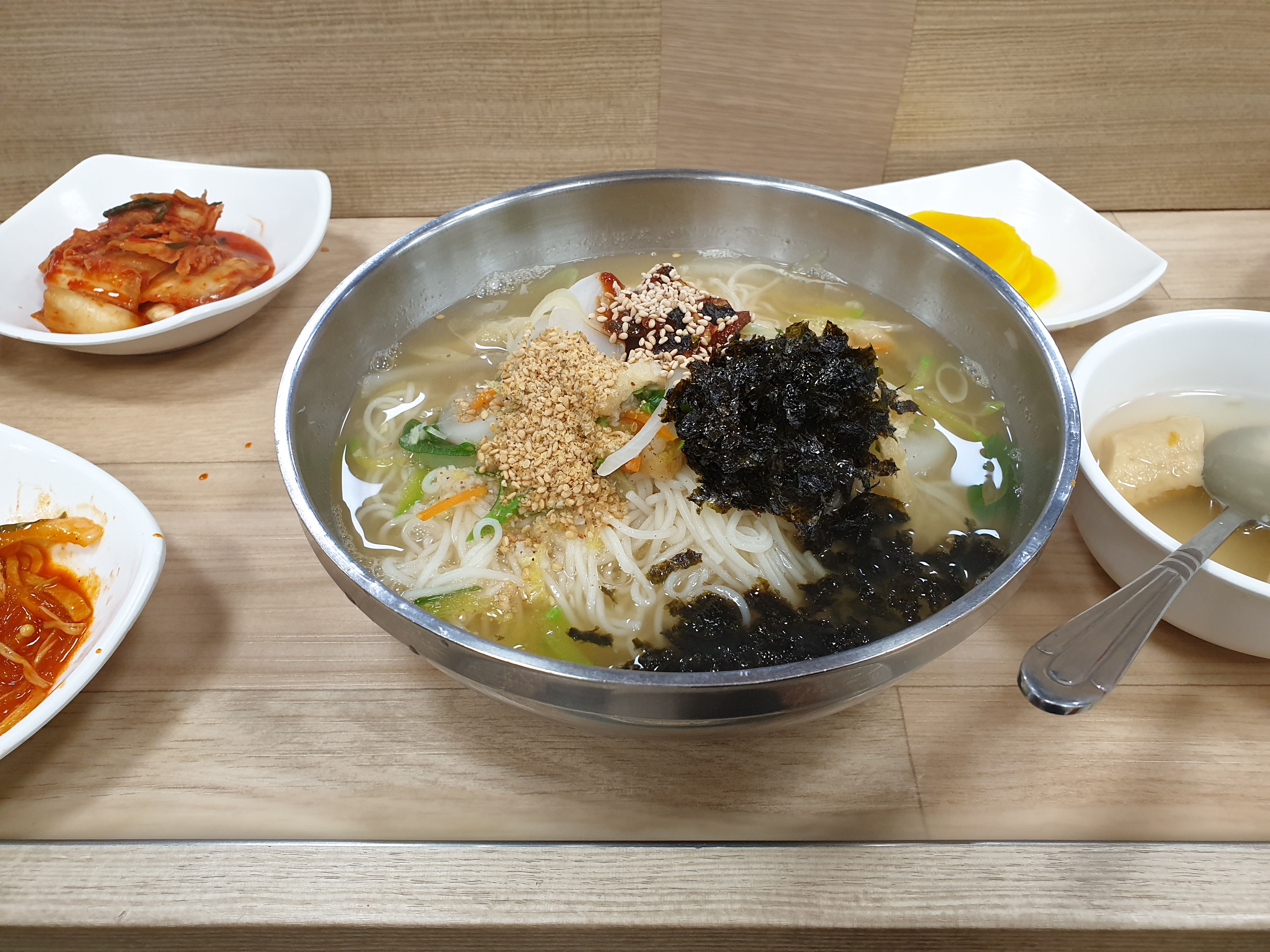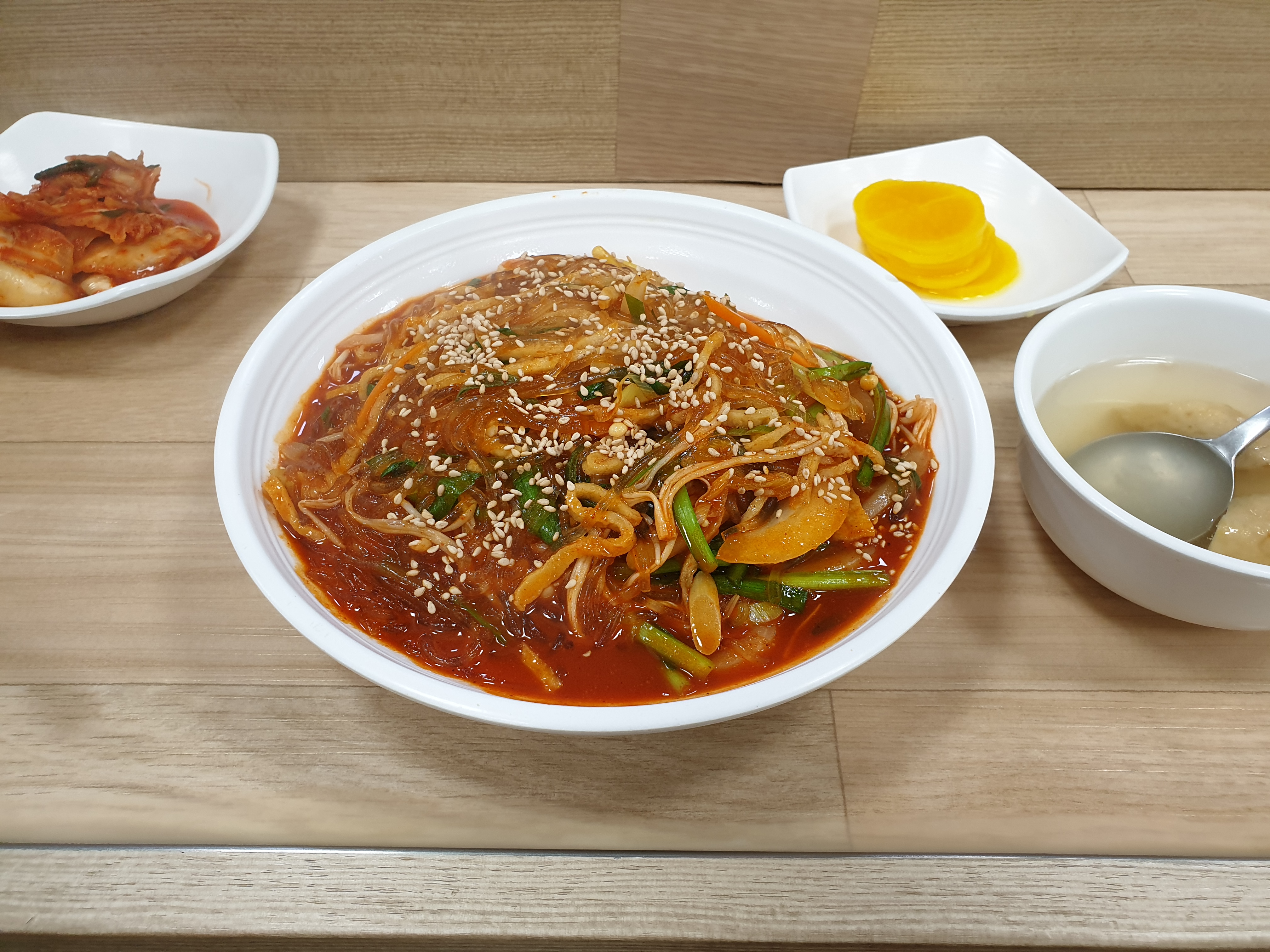 나는 콜라겐분식에서 잔치국수와 매운잡채를 먹었다. 방문일 기준 잔치국수 4000원, 매운잡채 5000원이었다. 기본 반찬으로 김치, 단무지와 어묵이 푸짐하게 들어 있는 어묵국이 나온다. 잔치국수는 칼칼한 맛이 좋았고 매운잡채는 고소했다. 매운잡채는 집에서 요리하는 사람을 위해 조리하지 않은 채 따로 재료와 소스를 담아 판매하기도 한다.