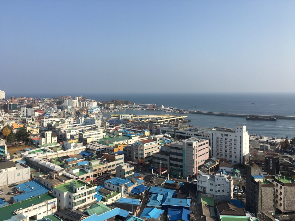 테라스가 꽤 마음에 들었다. 바다가 보이는 객실을 예약하지 않아서 창밖 풍경에 큰 기대는 없었는데 생각보다 괜찮았다. 체크아웃하기 전 엘리베이터를 살피니 하늘공원으로 가는 층이 있었다. 건물 옥상에 정원이 있었던 것이다.